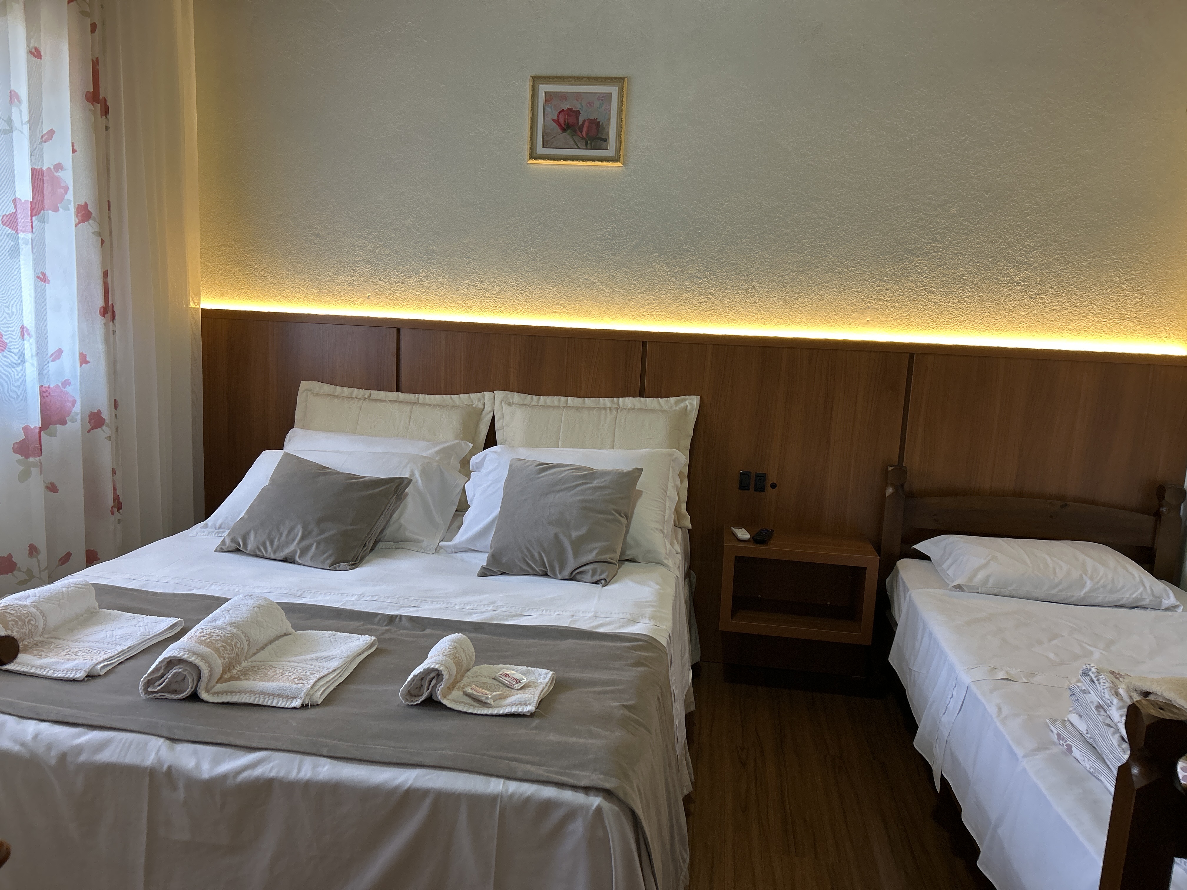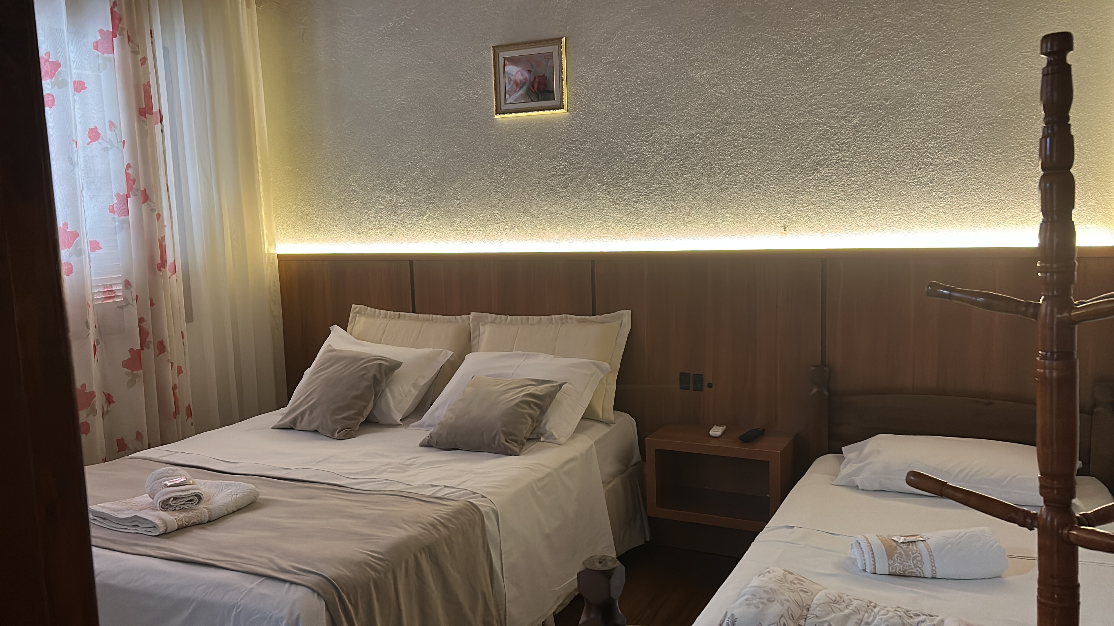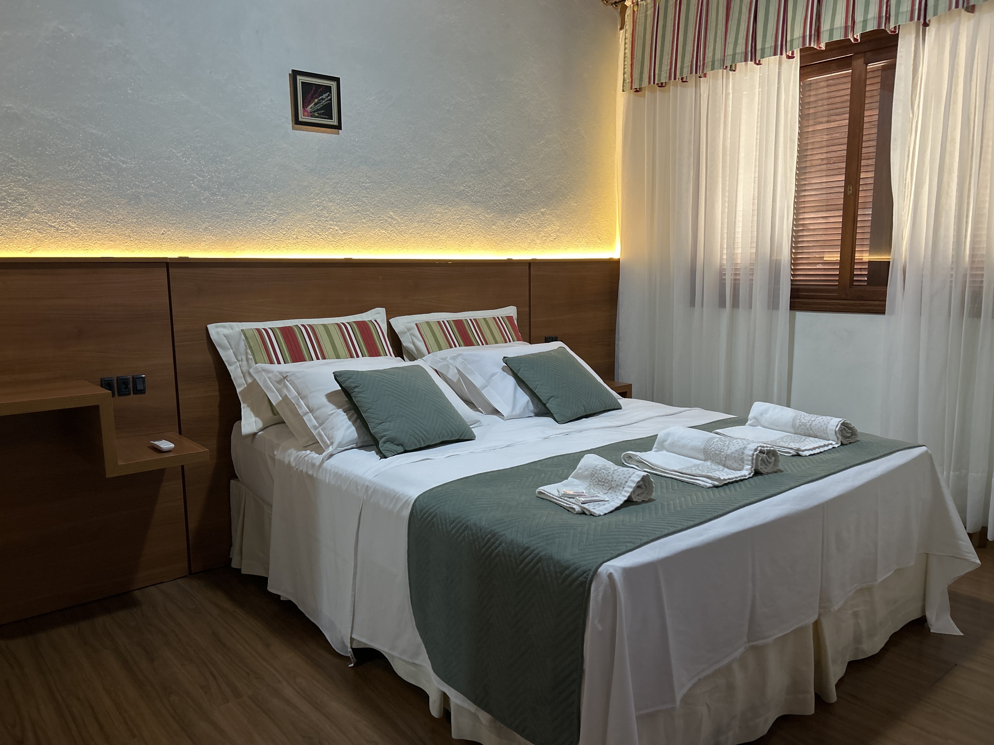 3 PessoasNa pousada, os quartos possuem guarda-roupa. Todos os quartos da Pousada Unser Haus dispõem de TV de tela plana, banheiro privativo. Os quartos contam com uma cama Queen Size, possibilidade de cama extra de solteiro, frigobar, roupa de cama, toalhas, ar-condicionado e televisão de tela plana.